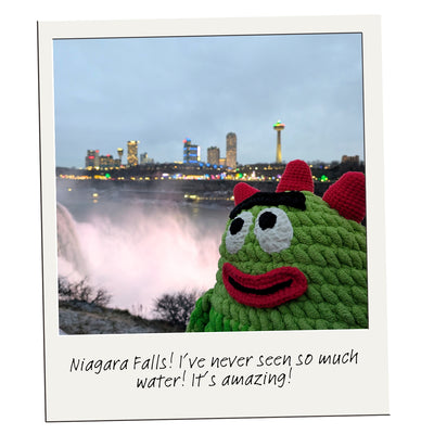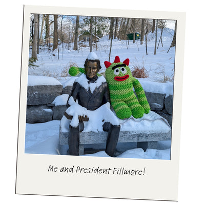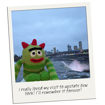 Our great BIG crochet Brobee (crafted with care by Allison Hoffman of Crafty Is Cool) is traveling all over the US. This larger-than-life crochet character is on a mission to spread joy and creativity across the country. So far he has visited California, Texas, Florida, Indiana, Pennsylvania, Connecticut, Minnesota, Alaska, Nevada, Michigan, Wisconsin and New York!
