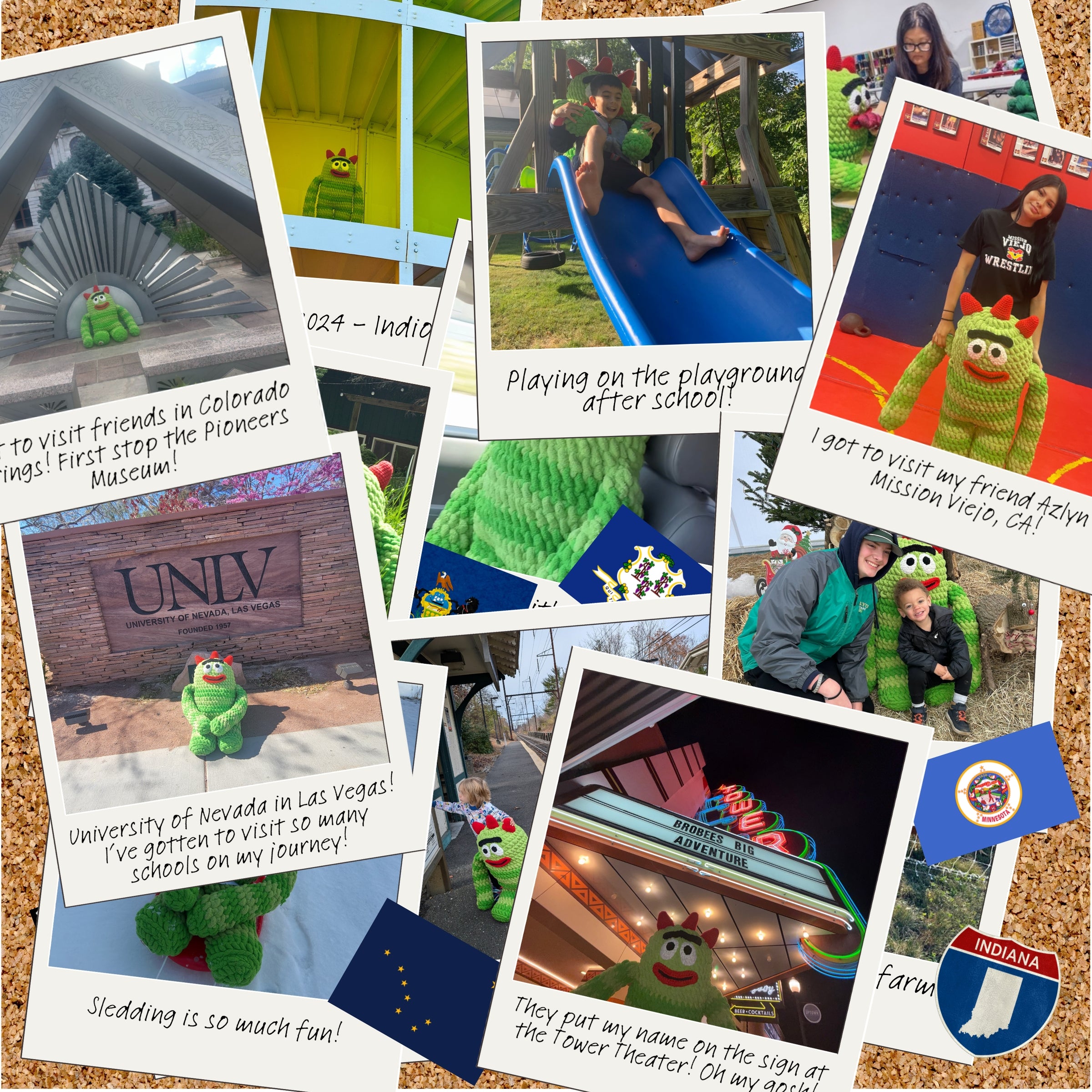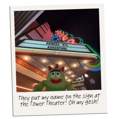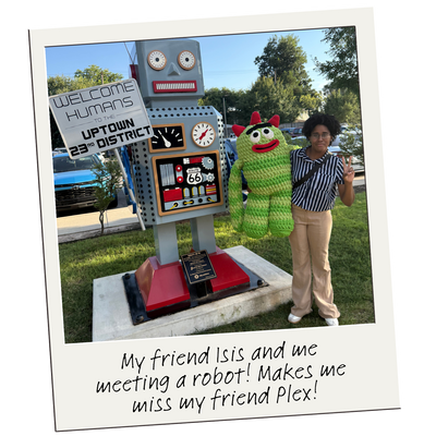 Our great BIG crochet Brobee (crafted with care by Allison Hoffman of Crafty Is Cool) is traveling all over the US. This larger-than-life crochet character is on a mission to spread joy and creativity across the country. So far he has visited California, Texas, Florida, Indiana, Pennsylvania, Connecticut, Minnesota, Alaska and Nevada!
