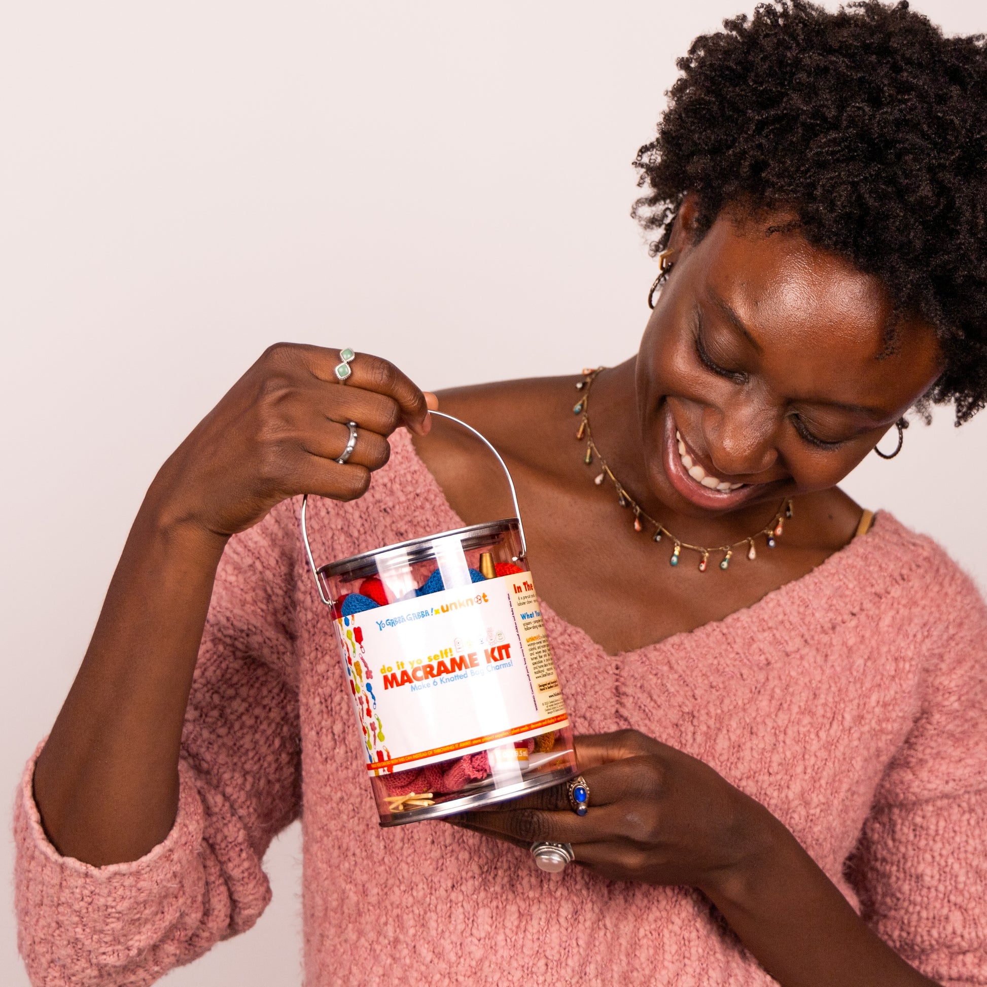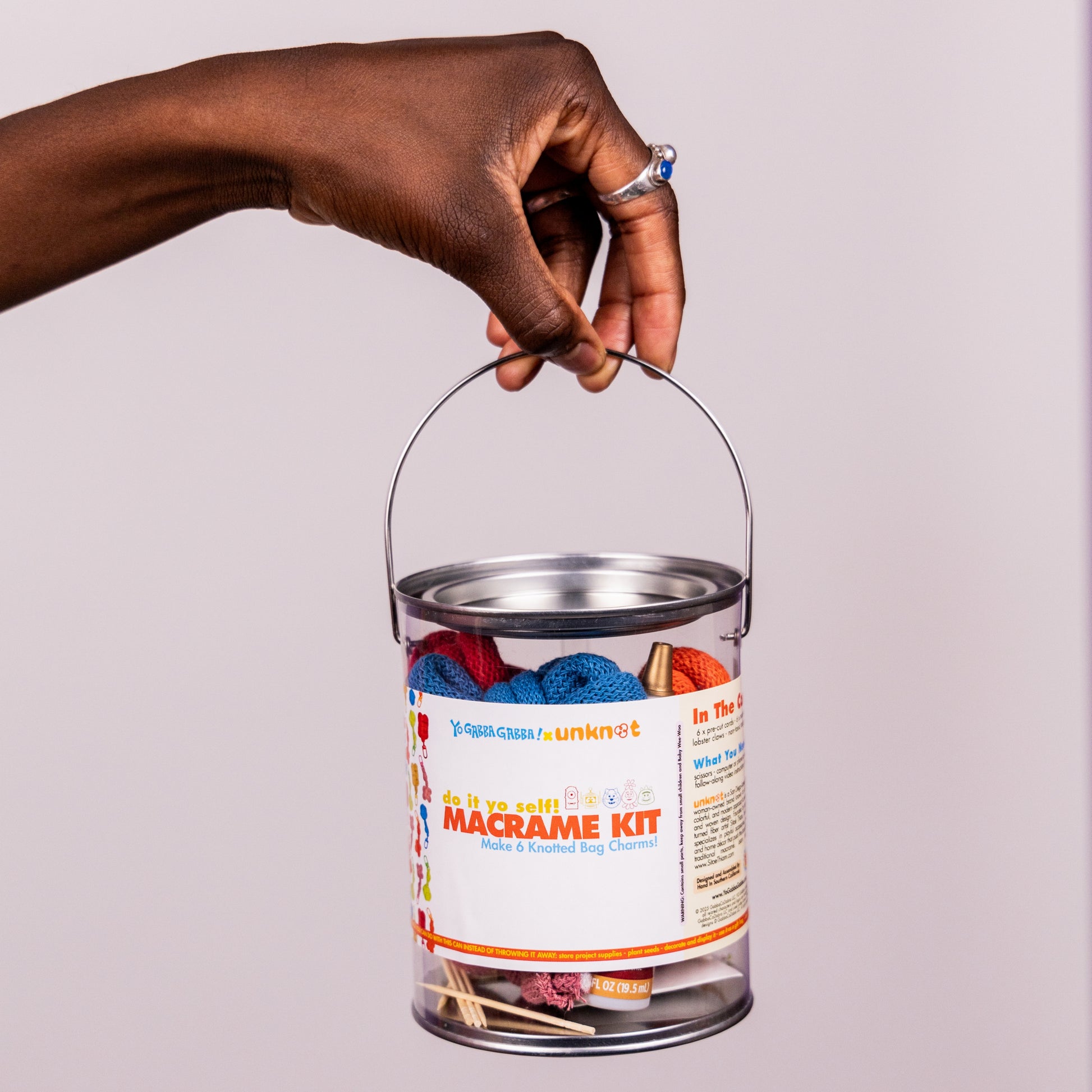 Get knotty with the Yo Gabba Gabba! x Unknot Do It Yo Self! Macramé Kit! This colorful DIY set includes everything you need to make six unique macramé charms in vibrant Yo Gabba Gabba! colors. Designed for beginners and makers of all ages, it’s the perfect way to learn, play, and create your own artful accessories. Every kit is hand-packed with care in Southern California.